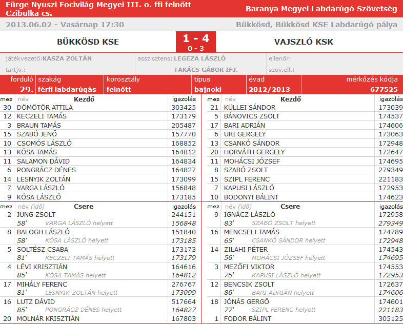 BÜKKÖSD KSE - VAJSZLÓ KSK : 1-4